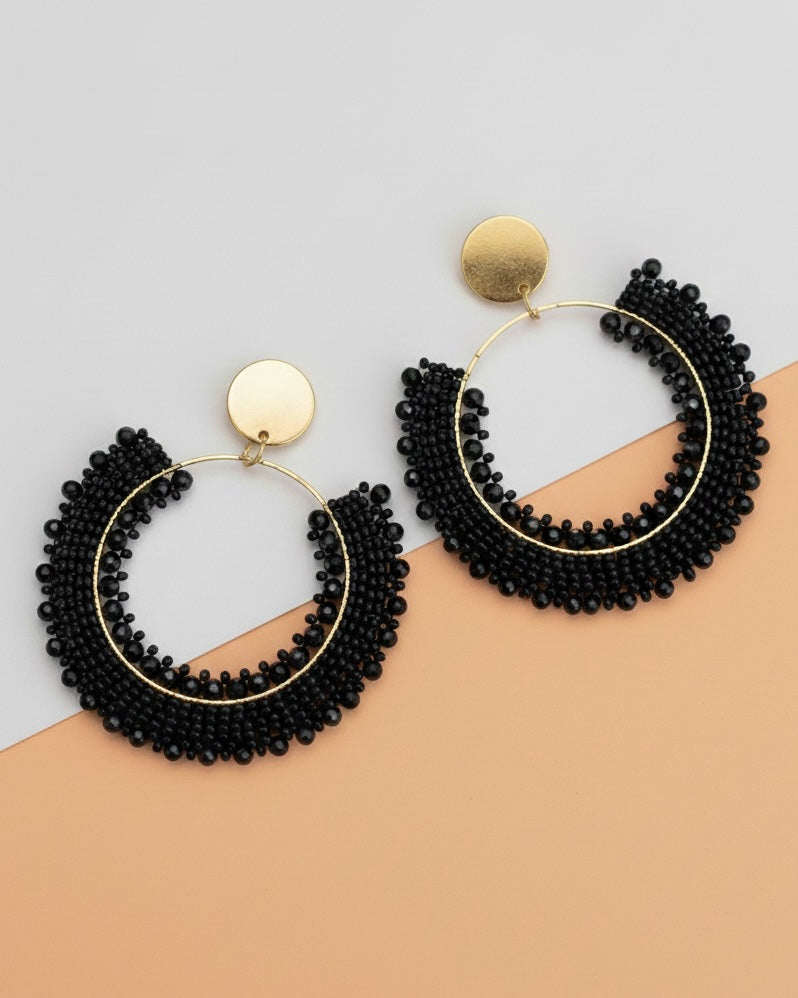 Material is brass metal covered with a hypoallergenic gold shower made in Medellin, Colombia. Glass beads are made in the Czech Republic. Both ensure the best premier long-lasting quality.